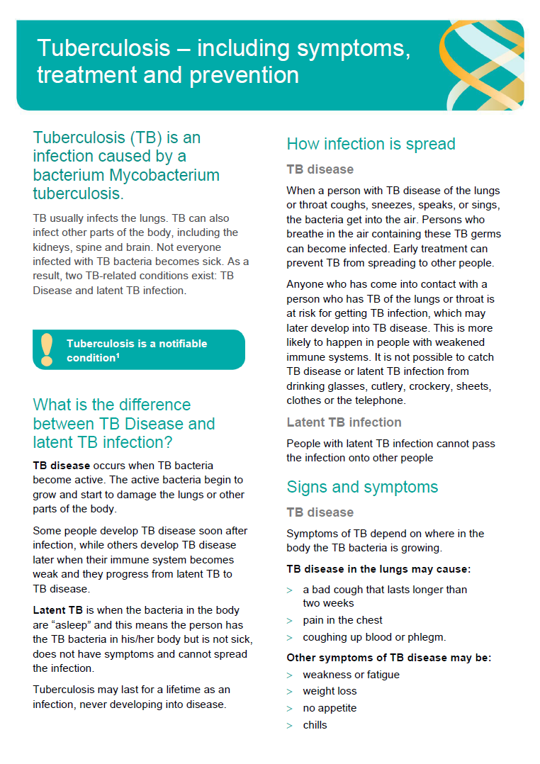 Tuberculosis symptoms, treatment and prevention263KB ∙ PDF fileDownloadDownload