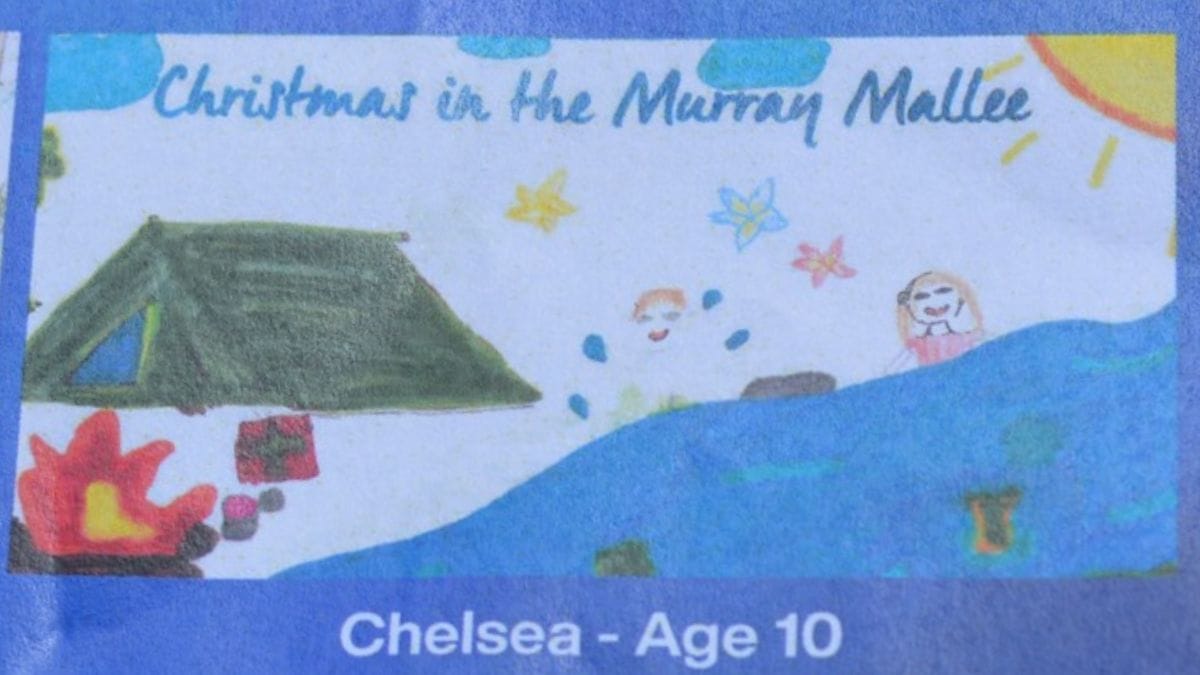 Chelsea Schilling's artwork, featuring a riverside camp, will appear on the Christmas card sent out to residents in the Murray Mallee.