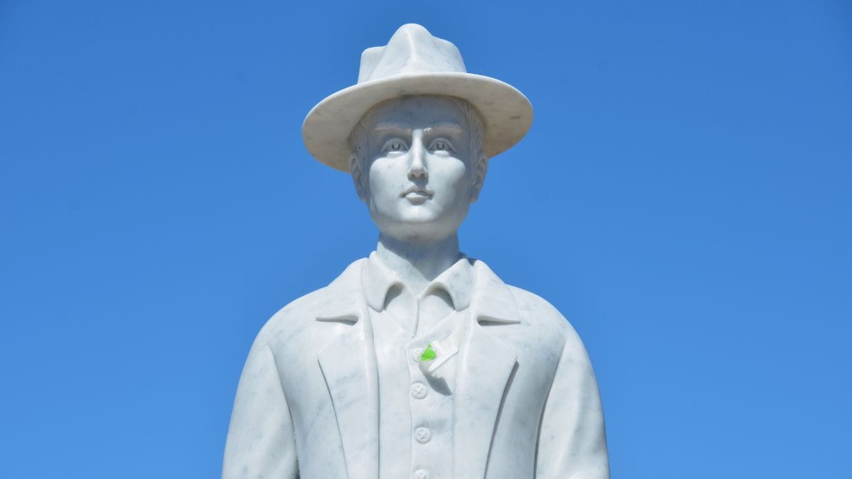 The marble statue was cut in the image of a typical Italian immigrant: suitcase in hand, hat on his head, ready to start a new life.