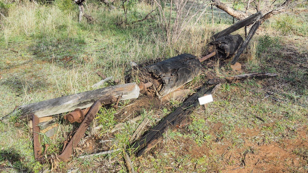 Look out for the old horse-drawn land roller and sign to the stock self-feeder and sheds, huts and living quarters from the 1930s and 40s.