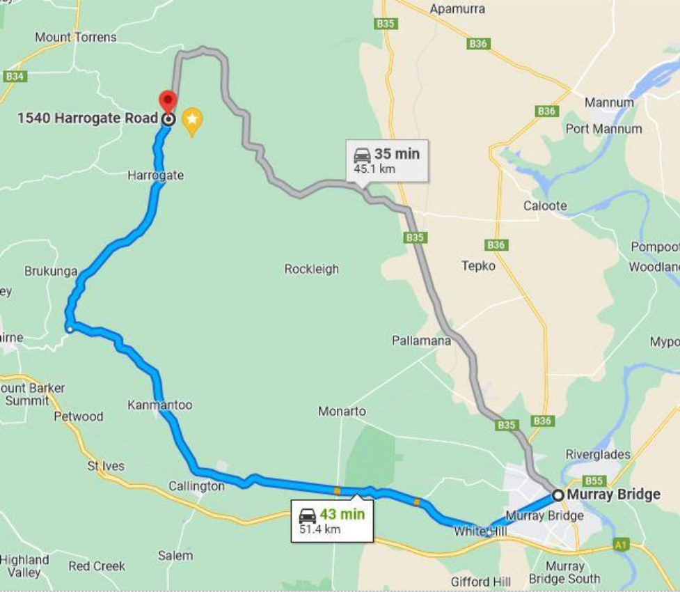 There are two optional routes, shown on the map, if travelling from Murray Bridge.