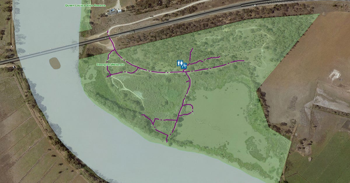 Located on the eastern banks of the River Murray adjacent to the Swanport Bridge, the wetlands are a recreational reserve under the control of the Rural City of Murray Bridge.