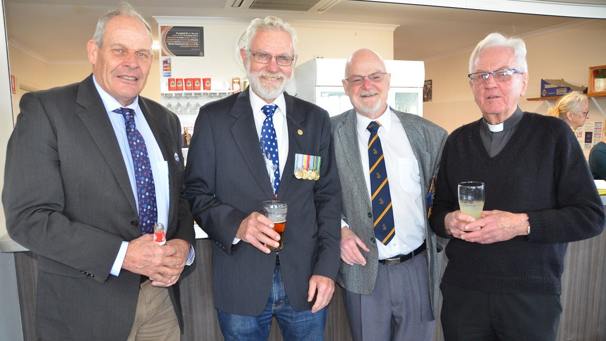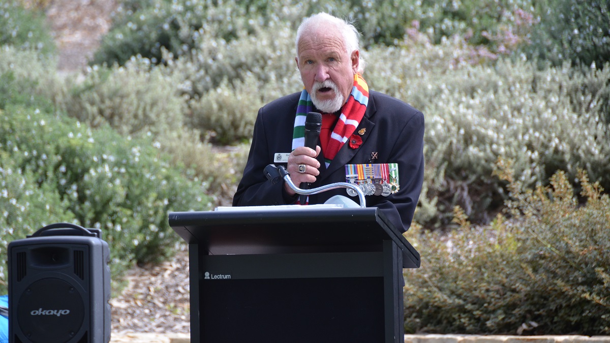 Father Neville Connell, who was a Citizen Military Forces chaplain in Vietnam in ’72 and ’73, also attended the service at the war memorial in Sturt Reserve.