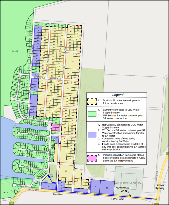 At present, properties at Wellington East only have access to non-potable river water – that is, water not fit for human consumption – via a scheme managed by the Coorong council.