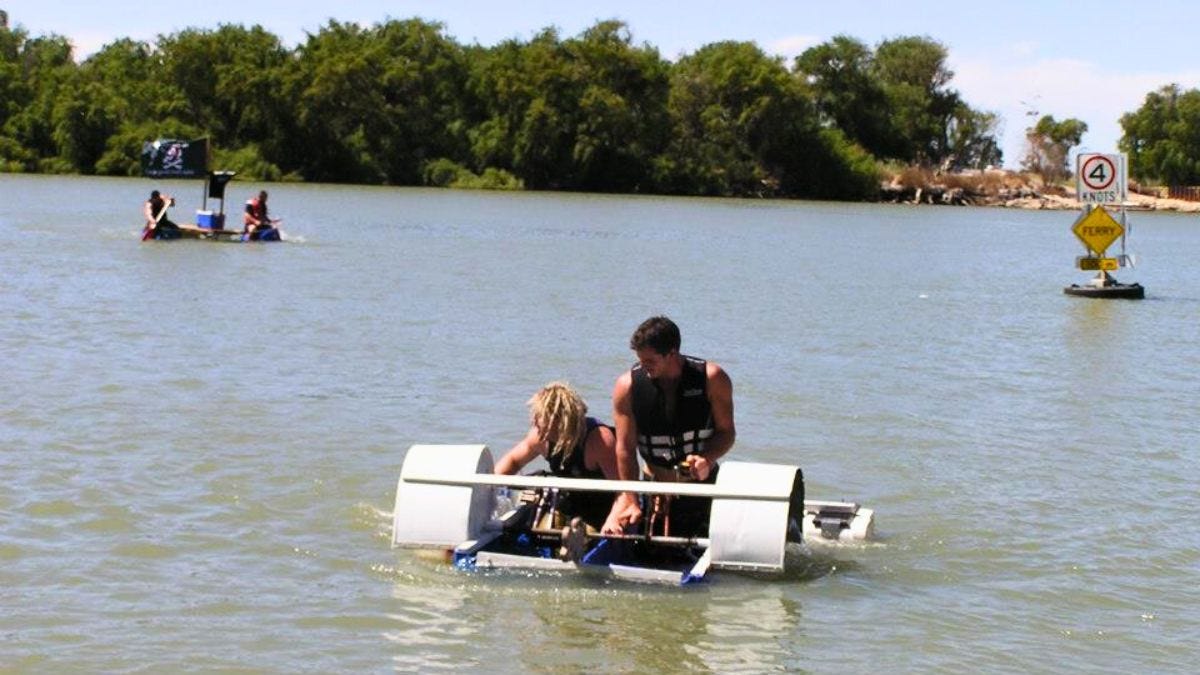 Not since 2014 have locals been invited to build boats out of barrels – and whatever other bits they can find – and try to paddle across the River Murray for a good cause.