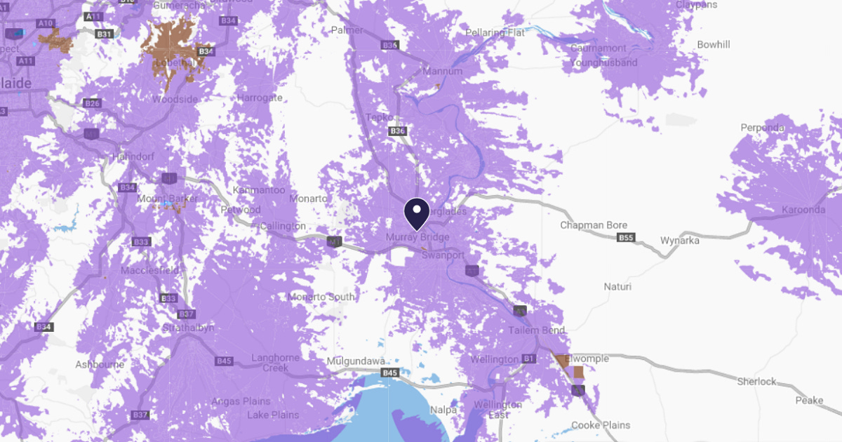 Photo: Thomas Jensen/Unsplash. Map of NBN coverage in the Murraylands: NBN Co.