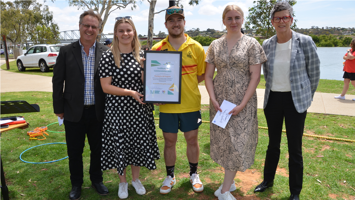 The winner of the commendation certificate for an organisation or program was the Playing for All program, delivered by Ashleigh Goode on behalf of Special Olympics South Australia and the Murray Bridge Wellbeing Hub.