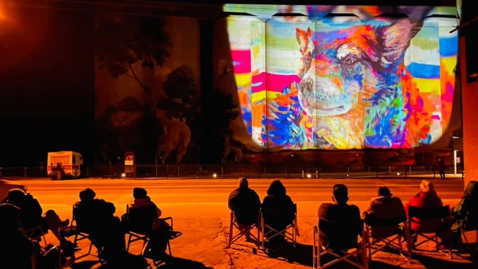 Everyone ended up seated on their deck chairs on the mild night, watching the magnificent silo art night projection presentation.